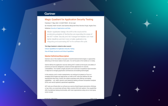 Article Link: Sonatype Named in the 2023 Gartner® Magic Quadrant™ for Application Security Testing 1 post - 1 participant...
