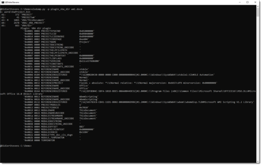 This update brings an new plugin: plugin_vba_dir.py (there are no changes to oledump). This plugin parses the records found in...