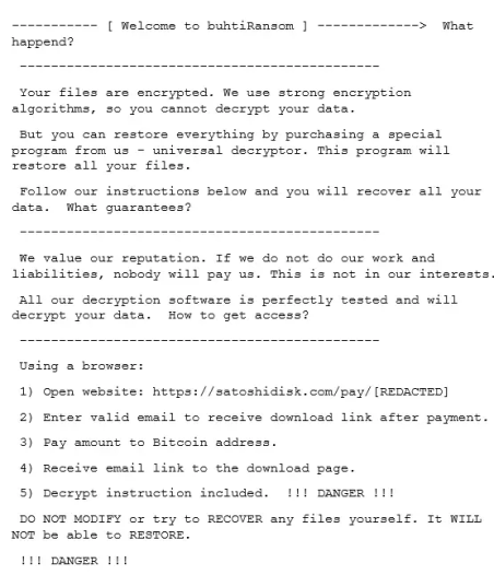 The ransomware appends the .buthi extension to the encrypted files.
