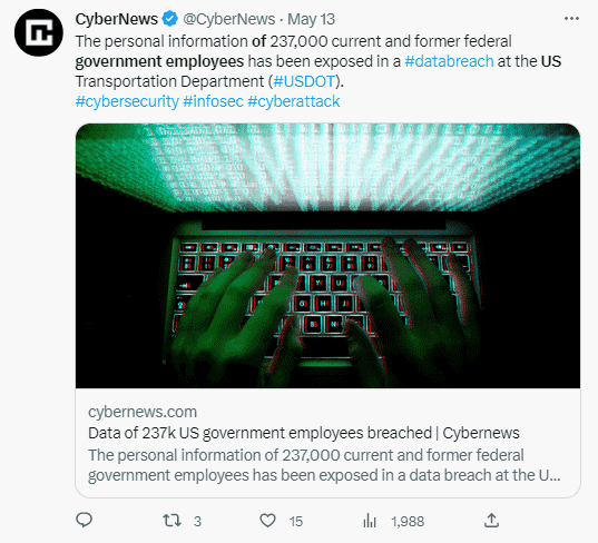 According to officials briefed on the situation on Friday, a breach of information at the US Transportation Department (USDOT) revealed the private info of 2,37,000 present and past federal workers.